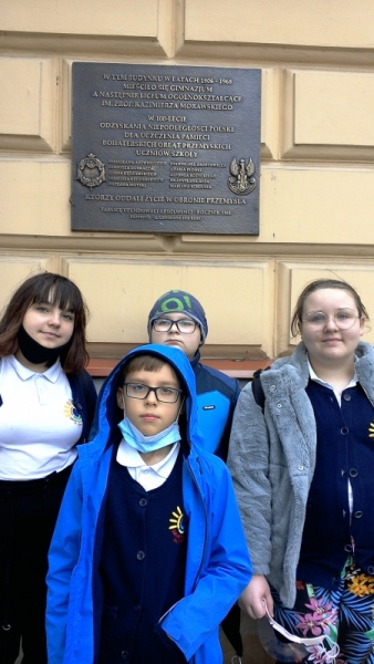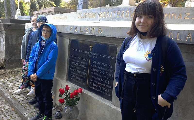 15 października 2020 wybraliśmy się na spacer śladami Orląt Przemyskich. Już sam budynek naszej szkoły jest szczególnym miejscem, ponieważ w 1918 roku mieściło się tu gimnazjum, którego uczniowie brali udział w walkach z listopada tegoż roku. Upamiętnia to tablica na murach szkoły. Następnie przeszliśmy się pod pomnik Orląt Przemyskich, a następnie mostem im. Orląt Przemyskich doszliśmy do ul. Jagiellońskiej. Dalej już autobusem do Cmentarza Głównego przy ul. Słowackiego. Tam odszukaliśmy grobowiec Orląt Przemyskich oraz zwiedziliśmy wybrane cmentarze wojskowe. Pogoda i humory nam dopisywały. Wszyscy zadowoleni wróciliśmy do szkoły.