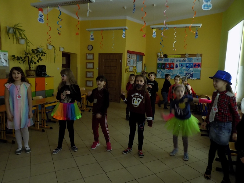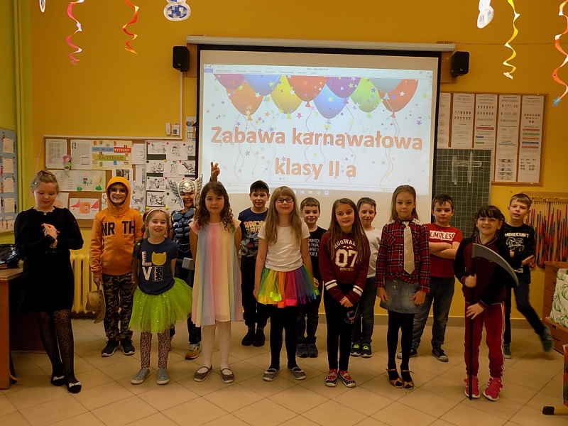 Karnawał to miła tradycja przepełniona muzyką i tańcami. Klasową zabawę karnawałową uczniowie klasy II a urządzili w mięsopuście – okresie wzmożonych zabaw. W piątek z zapartym tchem przygotowywali dekoracje, które umiliły im wspólnie spędzony czas. Zachowując reżim sanitarny dzieci bawiły się znakomicie przy rytmach różnorodnej muzyki. Jak przystało na prawdziwy bal uczniowie wzięli udział we wspólnych grach. Sił do zabaw dostarczyły im smakołyki zakupione przez rodziców, za które serdecznie dziękujemy.