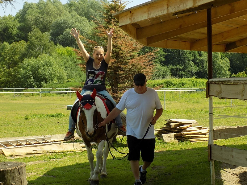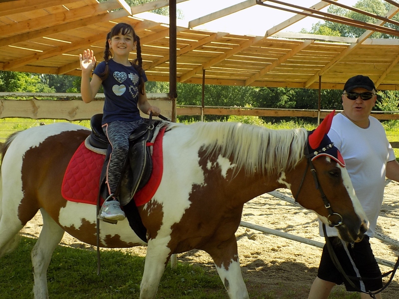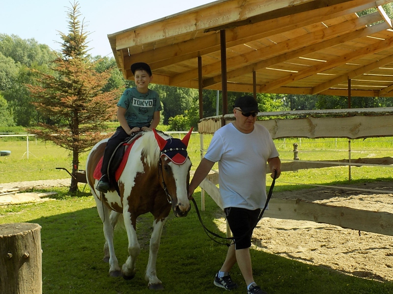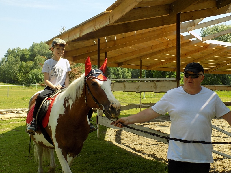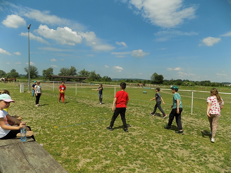 Korzystając z pięknej słonecznej pogody uczniowie klasy 2 postanowili aktywnie spędzić czas na świeżym powietrzu. Wybrali się do stadniny koni w Prałkowcach, gdzie każdy mógł poczuć się jak prawdziwy jeździec. Dla wielu dzieci była to pierwsza okazja, aby poznać bliżej te wspaniałe zwierzęta. Chętnie jeździliśmy na koniach i wzięliśmy udział w biegach terenowych. Zmęczeni z apetytem zjedliśmy pieczone kiełbaski i smakołyki przygotowane przez mamy. Na zakończenie zagraliśmy w dwa ognie. Wycieczka do stadniny dostarczyła nam nie tylko niezapomnianych wrażeń obcowania z bliska z końmi, ale uczyła wrażliwości, pokory i dyscypliny.