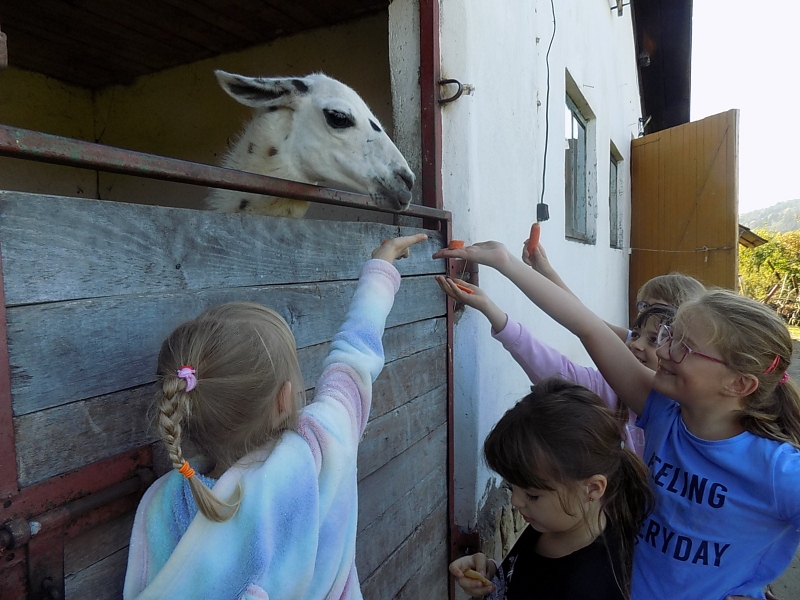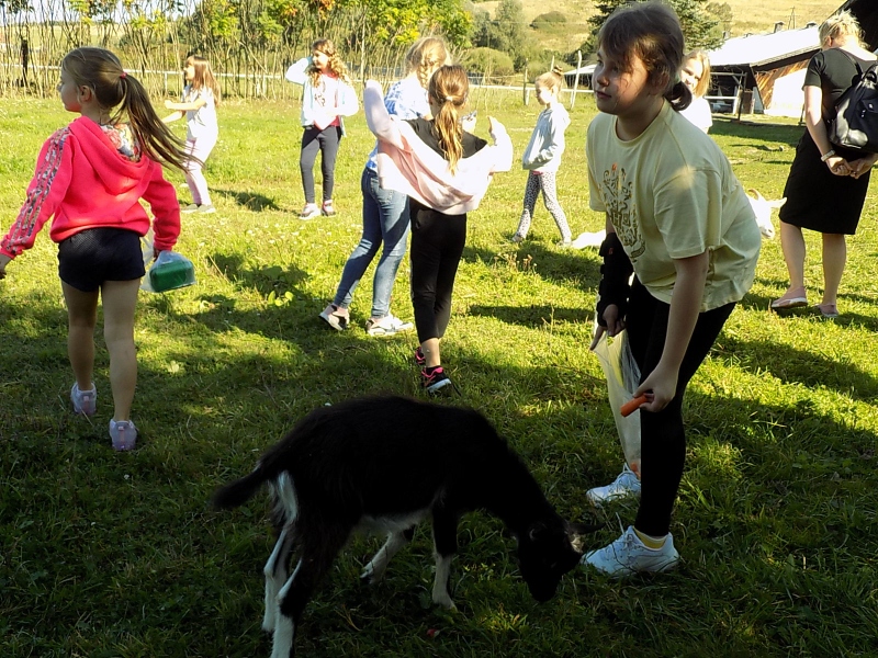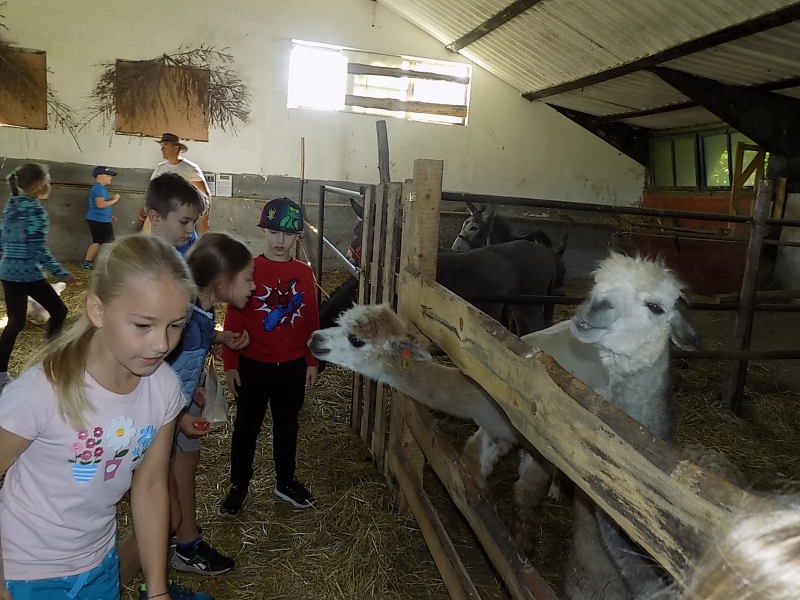 W piątek 10 września uczniowie klas młodszych wybrali się do zwierzyńca w Rokszycach. Dzieci zabrały ze sobą przeróżne przysmaki, którymi chętnie karmiły zwierzęta. Wyjazd umożliwił nam poznanie zwierząt hodowlanych: lam, osiołków, królików, kóz, świnek i krów. Niektórzy z nas chętnie zabraliby ze sobą do domu przesympatyczne świnki morskie. Wszystkich zachwyciły daniele. Emocji było wiele a przyczyniła się do tego słoneczna pogoda i zabawy na świeżym powietrzu. Dzięki temu wyjazdowi mogliśmy odpocząć, wspaniale spędzić czas, poznać nowych kolegów i lepiej się zintegrować.