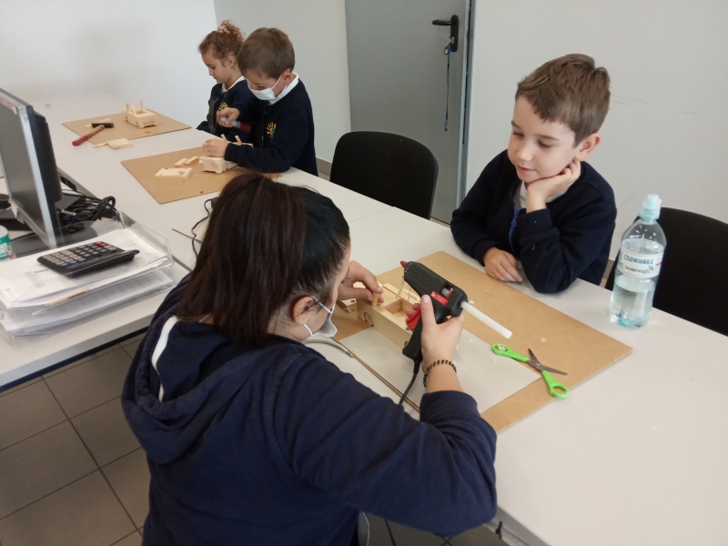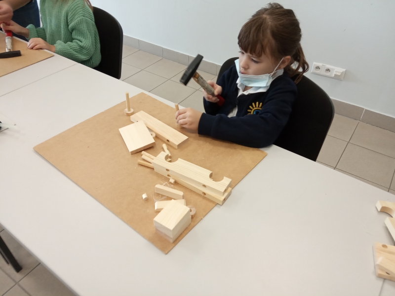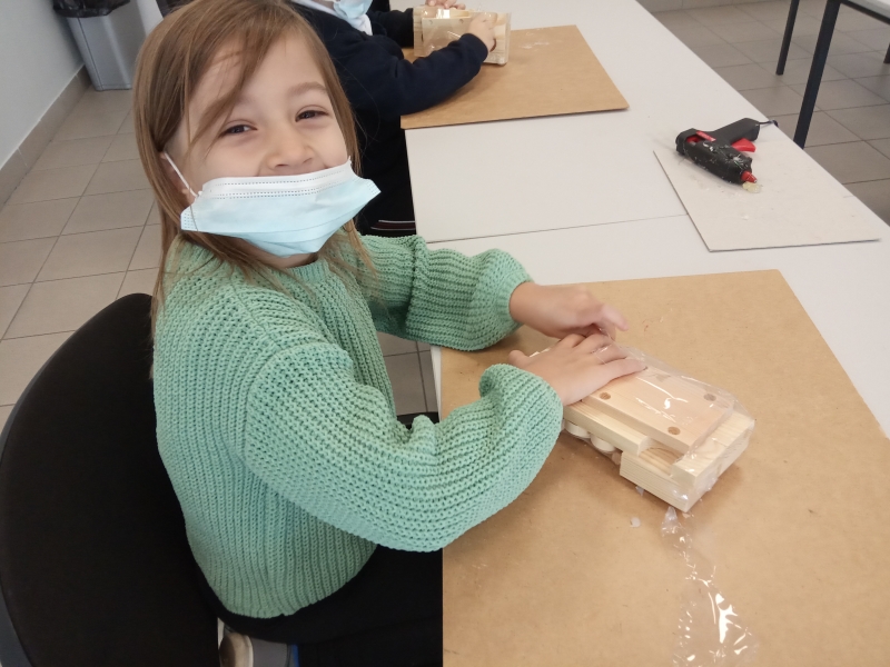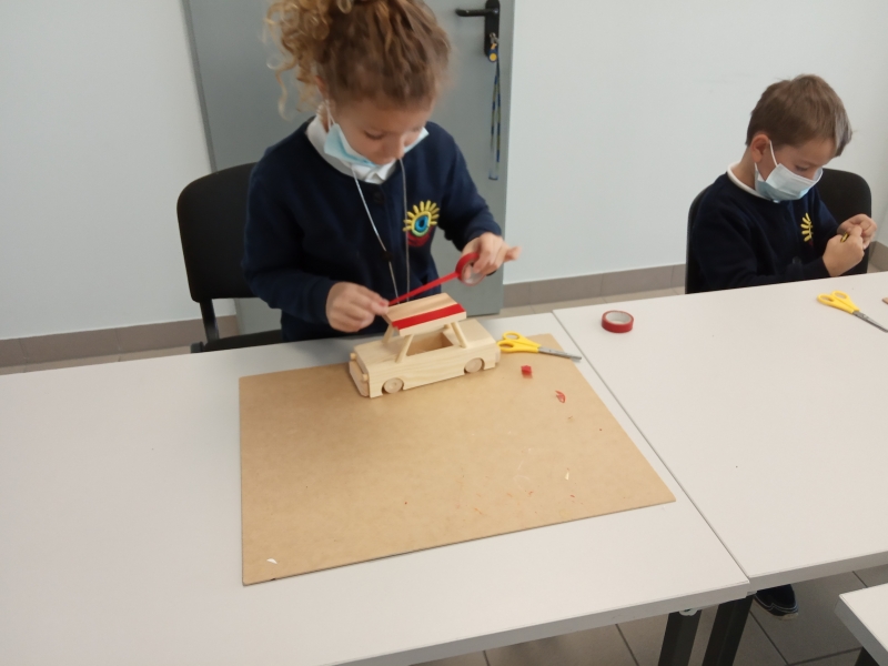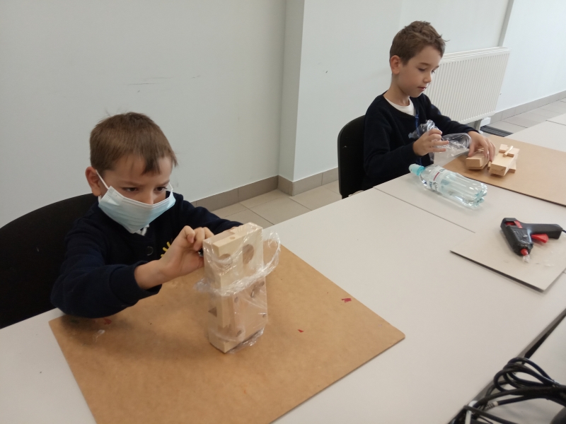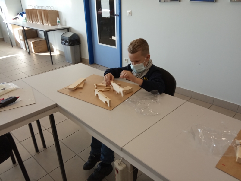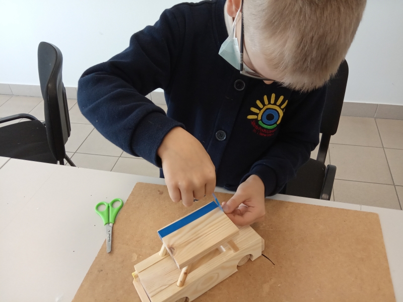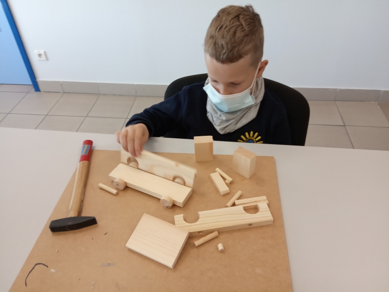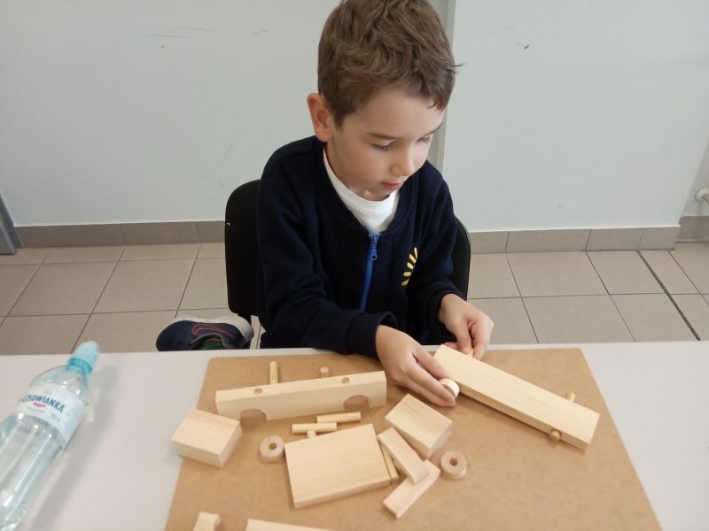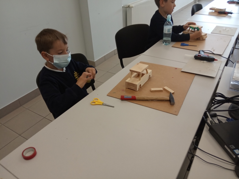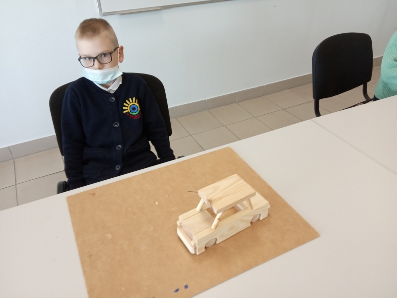 Największą atrakcją spotkania było samodzielne wykonanie samochodu z drewnianych elementów oraz ozdobienie go według własnego pomysłu. Uczniowie doskonale poradzili sobie z zadaniem. Na zakończenie dzieci otrzymały drobne upominki.