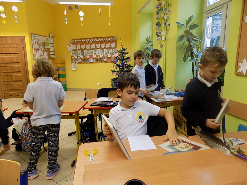 Po przyrzeczeniu nasi nowi czytelnicy otrzymali pamiątkowe dyplomy, zakładki i Wyprawki Czytelnicze, w skład których wchodzą: książka „Pierwsze abecadło” i broszura informacyjna dla rodziców. Projekt „Mała Książka – Wielki Człowiek Wyprawka dla Pierwszaka” zaprasza pierwszoklasistów do odbycia niezwykłej przygody, jaką jest umiejętność rozpoznawania liter, składania ich w wyrazy i zdania, a w końcu przyjemność czerpana z lektury.
