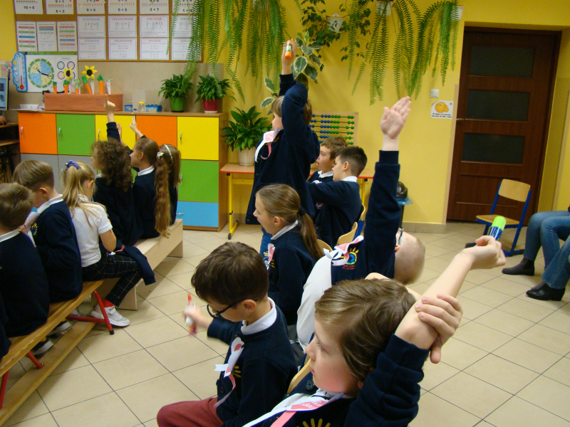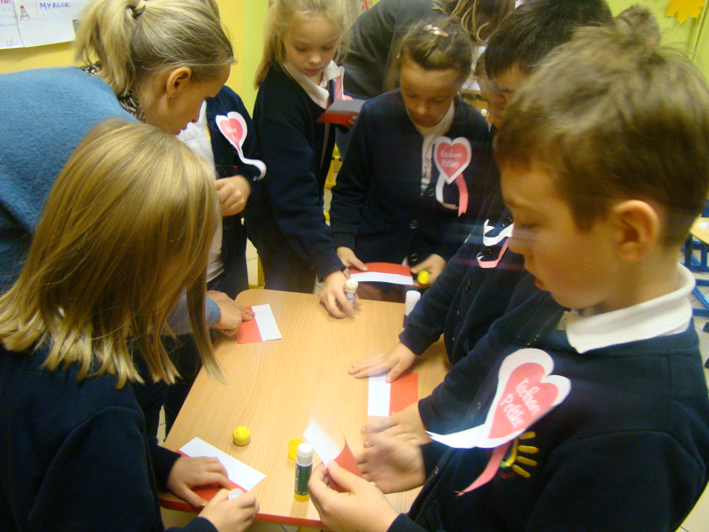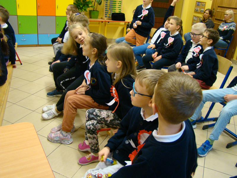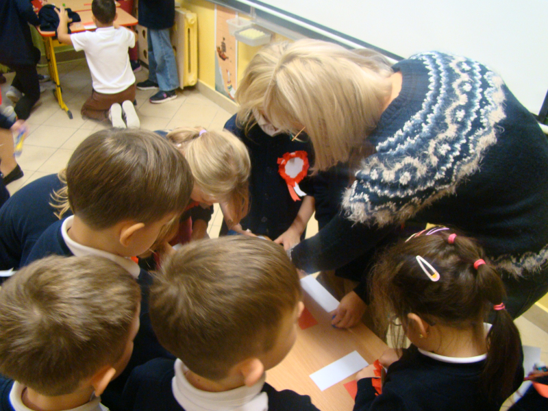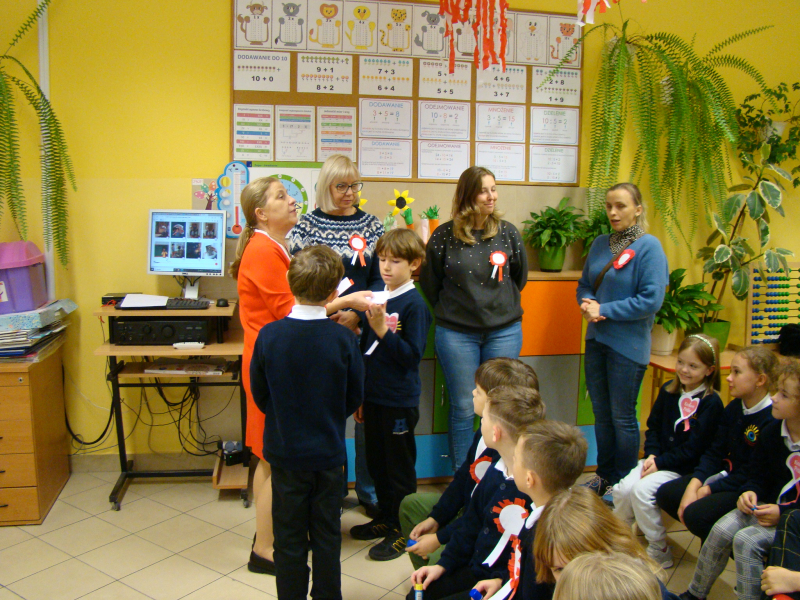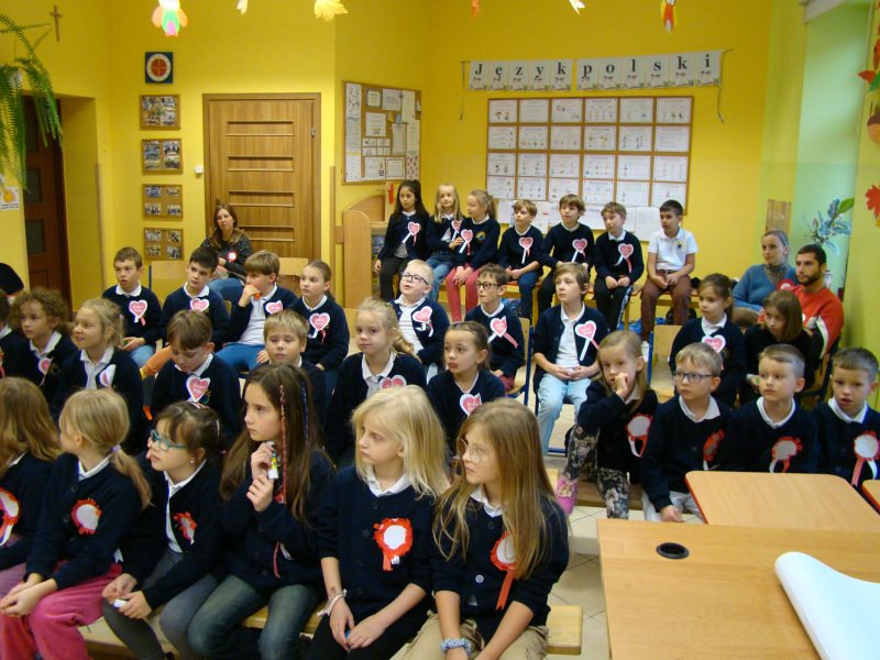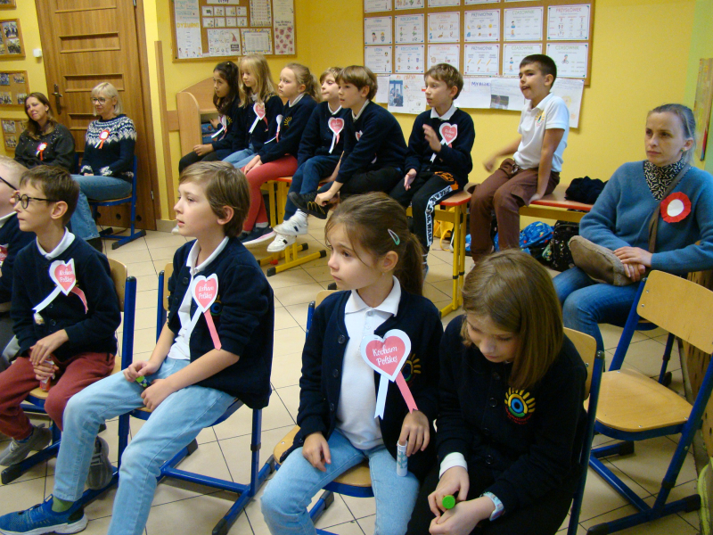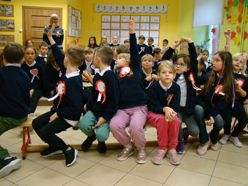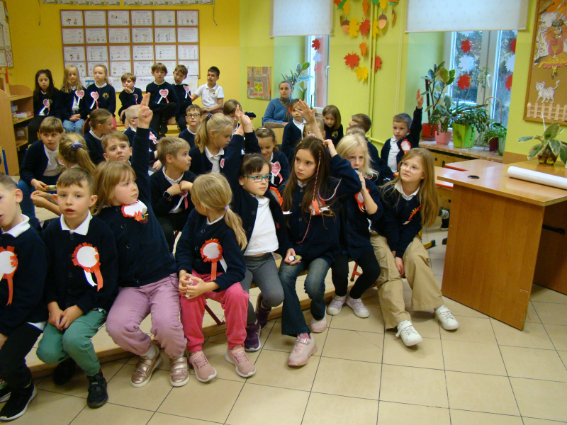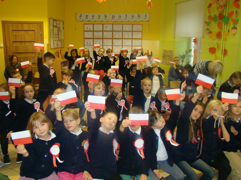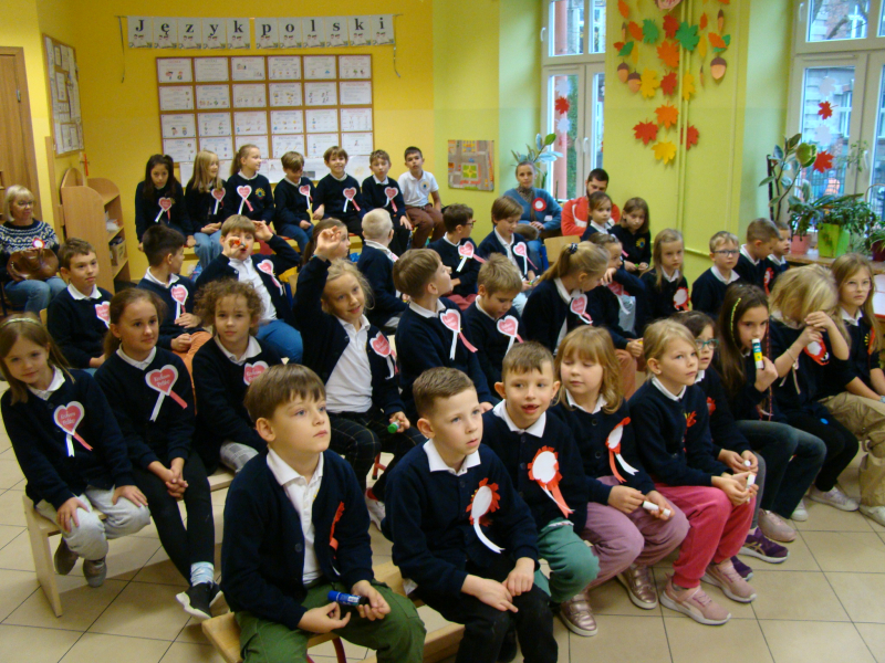 8 listopada uczniowie klas młodszych wzięli udział w zajęciach patriotycznych poświęconych Narodowemu Świętu Niepodległości. Po obejrzeniu filmu „Bohaterem być kiedyś i dziś” ogólnopolskiej kampanii BohaterON uczniowie wspaniale odpowiadali na pytania i sprawnie rozwiązywali zadania związane z naszą Ojczyzną, symbolami narodowymi, świętami państwowymi i patriotyzmem. Przy pomocy pań nauczycielek wykonali flagi i z dumą odśpiewali hymn państwowy. Na zakończenie zajęć udali się pod pomnik Orląt Przemyskich. Zapalili znicze upamiętniające młodych obrońców naszego miasta.