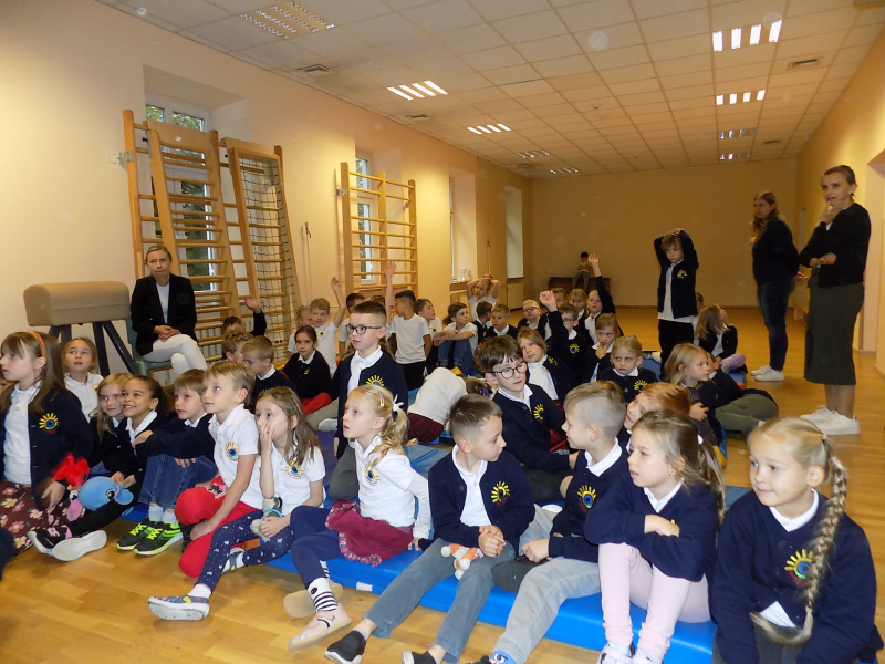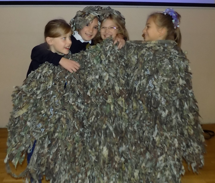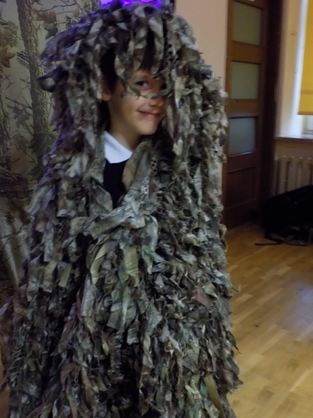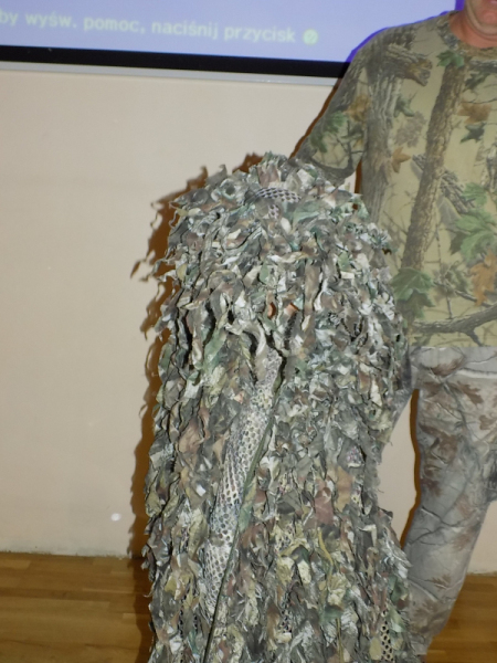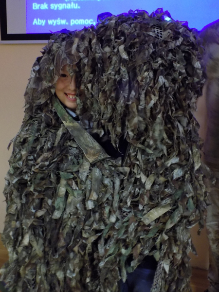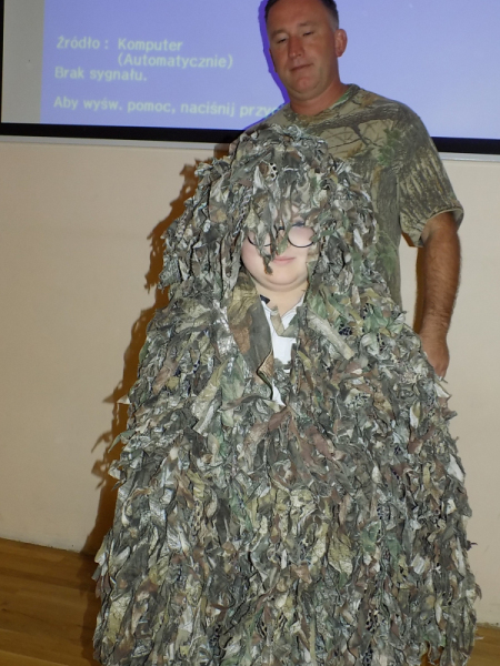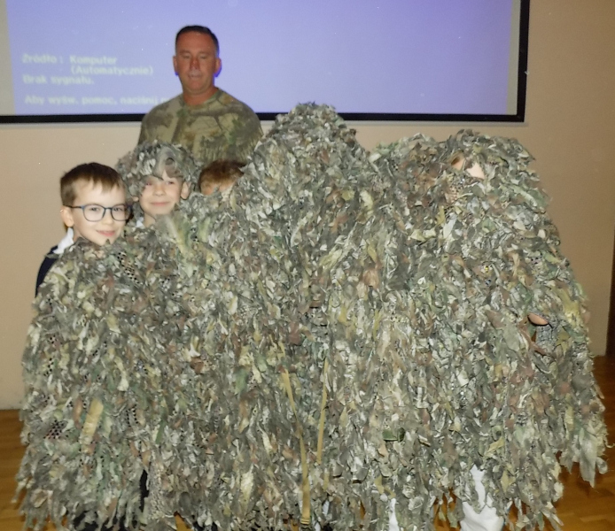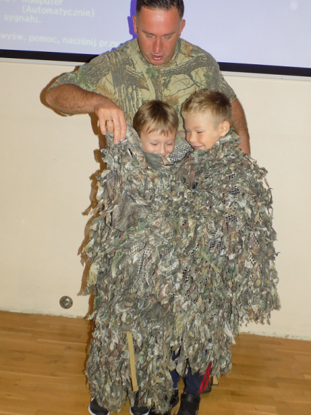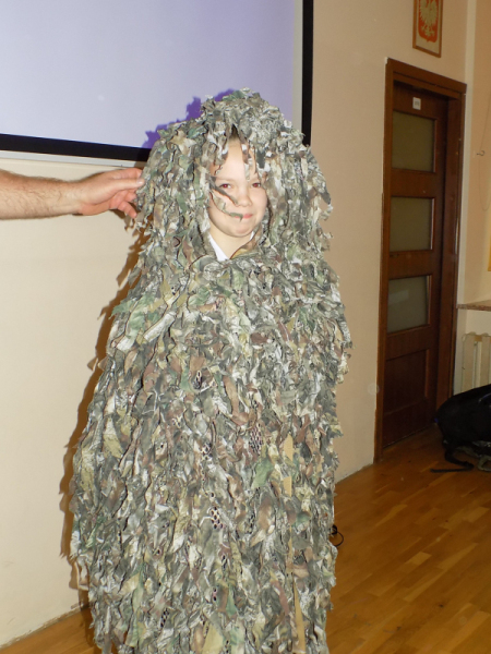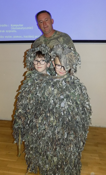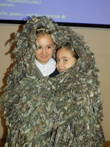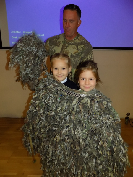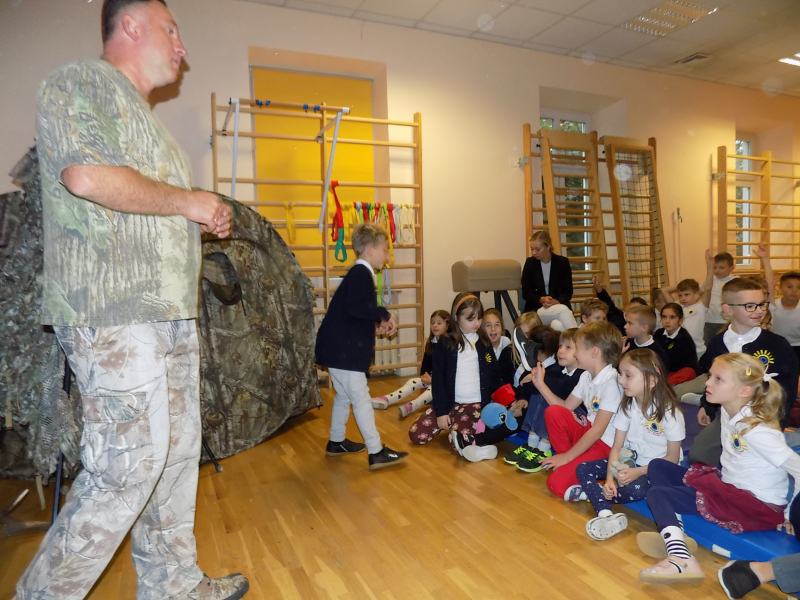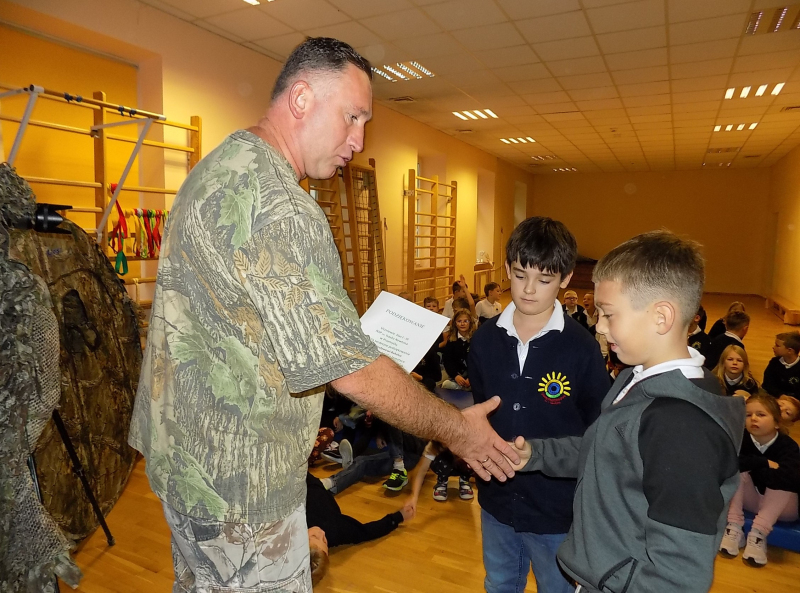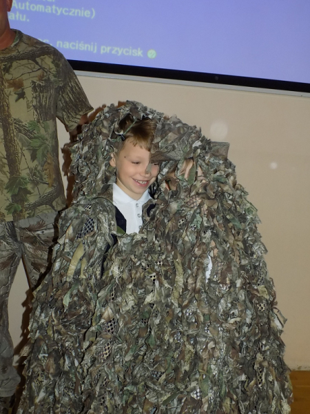 Uczniowie klas I-III spotkali się z pasjonatem fotografowania dzikiej przyrody panem Radosławem Bakalusem, który zapoznał nas ze swoimi zainteresowaniami oraz barwnie opowiadał o zwierzętach. Mogliśmy zobaczyć niezwykłe chwile z życia zwierząt uchwycone zastawionymi przez naszego gościa fotopułapkami. Zdjęcia i filmy wywołały u nas wiele emocji. Prawie każdy z nas chciał przymierzyć strój maskujący ułatwiający wykonywanie tak pięknych zdjęć.