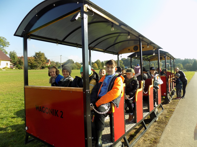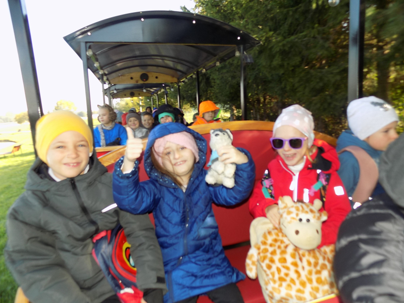 Mogliśmy skakać i zjeżdżać na dmuchańcach, bawić się rzutkami i tarzać się w kukurydzy. Na przejażdżkę zabrała nas sympatyczna lokomotywa, która radośnie dymiła na nasz widok. Na zakończenie wizyta w sklepiku z pamiątkami i obiad. 🍽️ Do domu wracaliśmy zmęczeni, ale szczęśliwi i z nadzieją na kolejną przygodę.