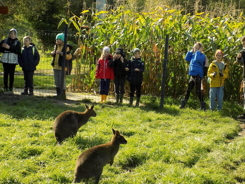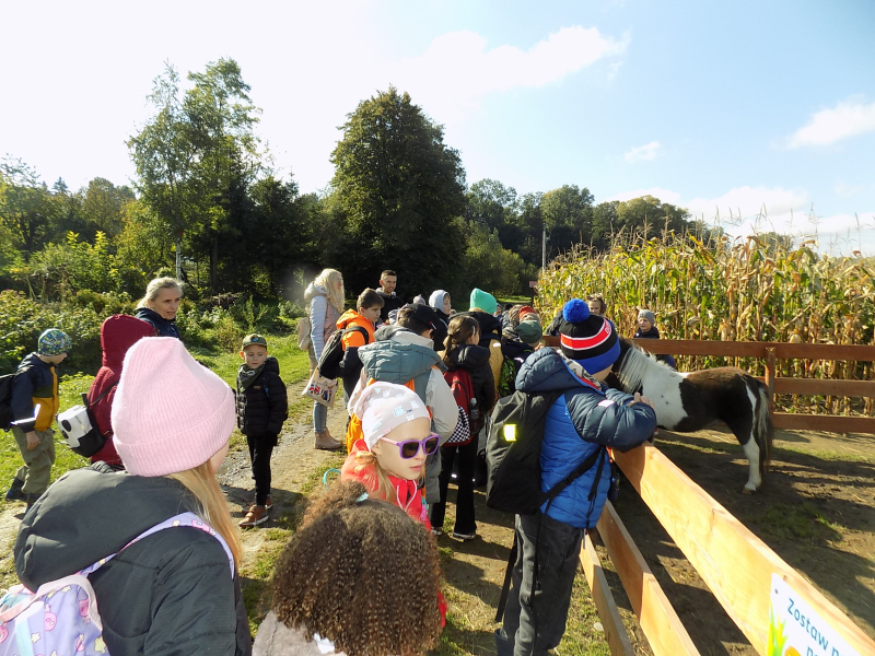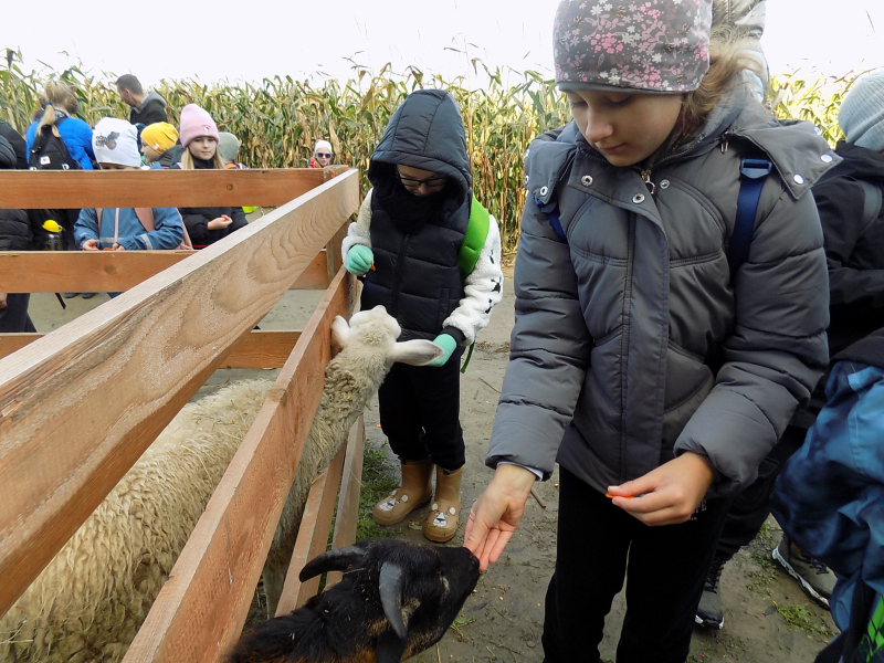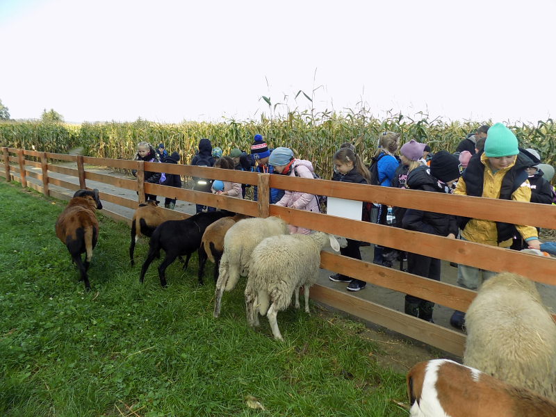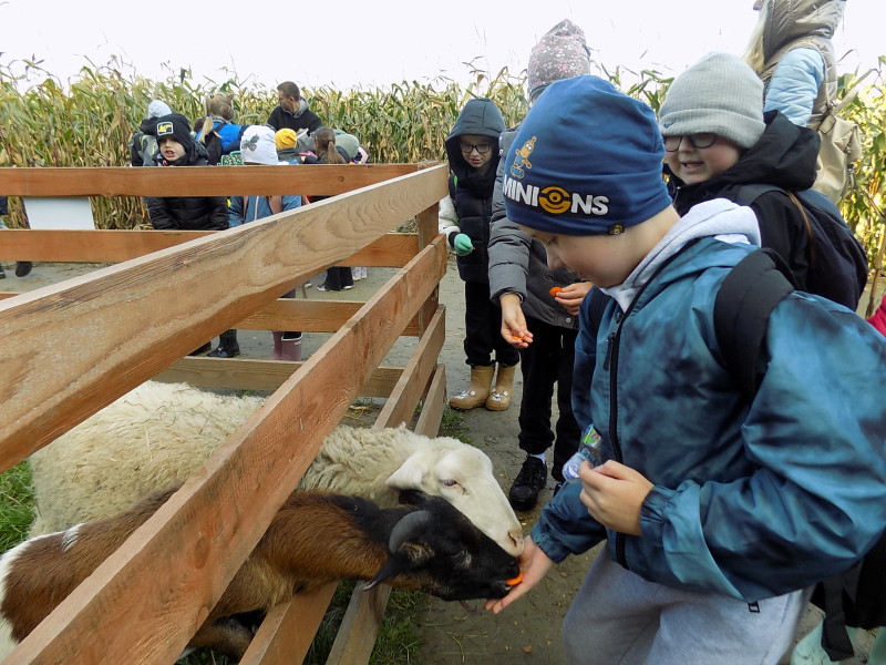 2 października uczniowie klas młodszych wybrali się na wycieczkę do Łopuszki Małej. Tam czekało na nas wiele atrakcji. W promieniach jesiennego słońca przeszliśmy przez labirynt kukurydzy – wszyscy do tarliśmy do wyznaczonego celu!!! Odwiedziliśmy zagrody zwierząt, które wręcz jadły nam z rąk. 🐐🐑🦙