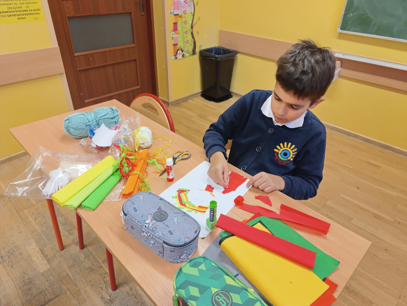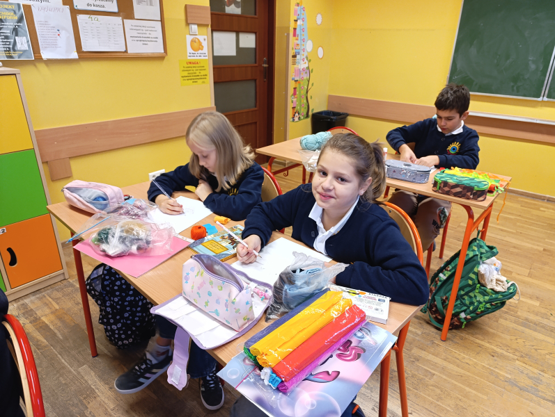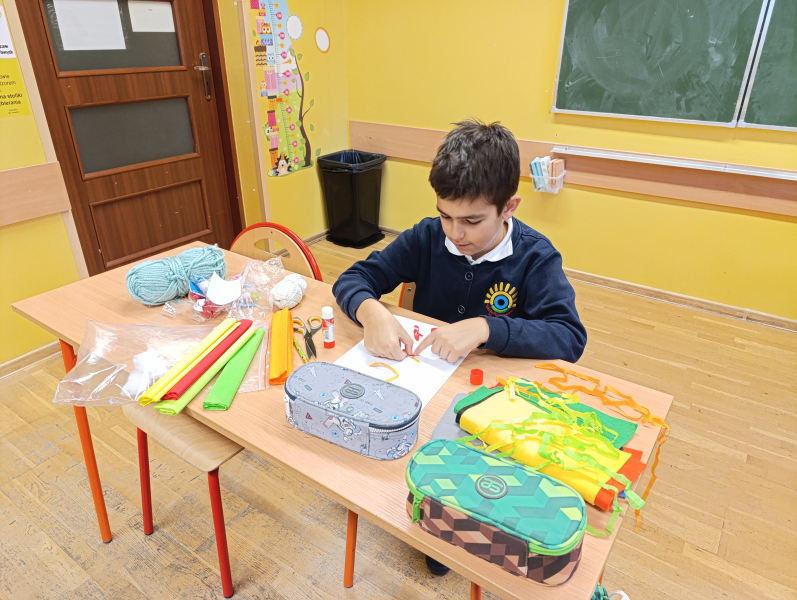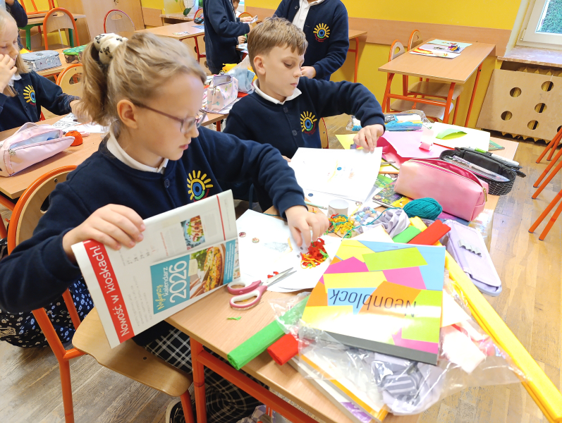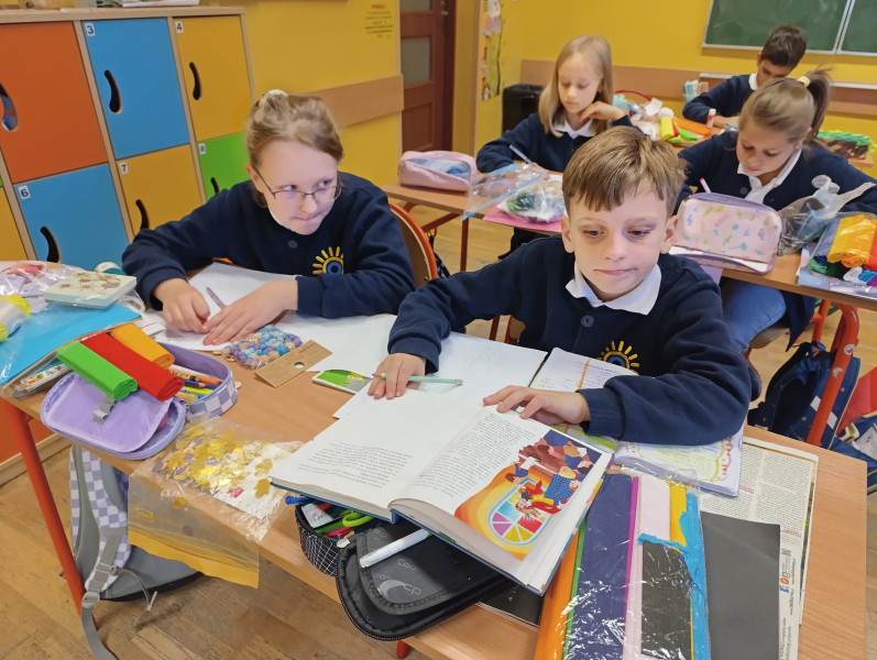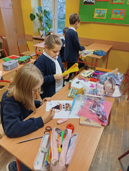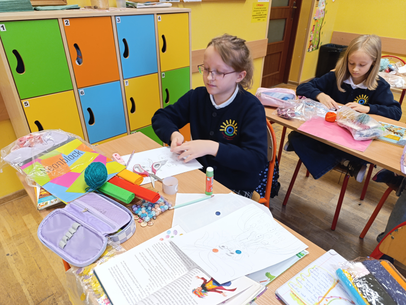 Czwartoklasiści przenieśli się dziś do niezwykłego świata Jana Brzechwy, gdzie wyobraźnia nie zna granic. Z kolorowych papierów, guzików, sznurków i uśmiechów stworzyli portrety samego Pana Kleksa!