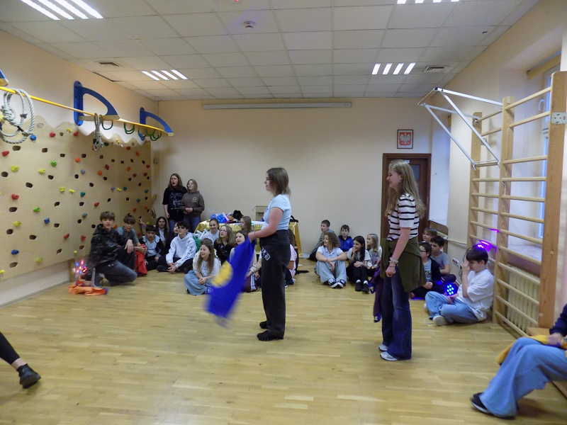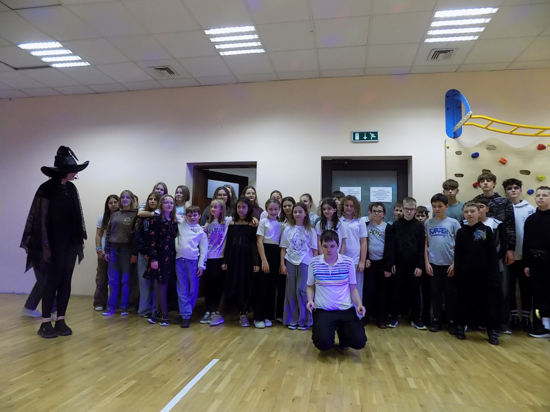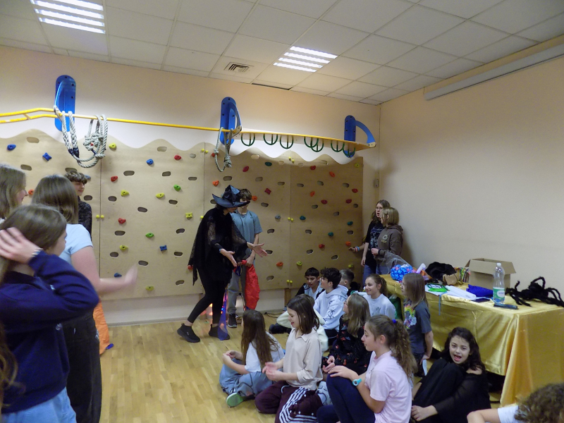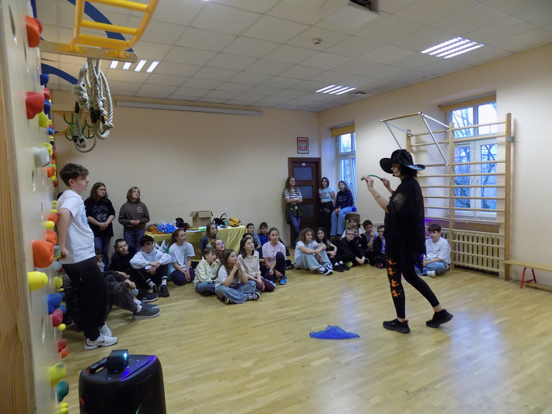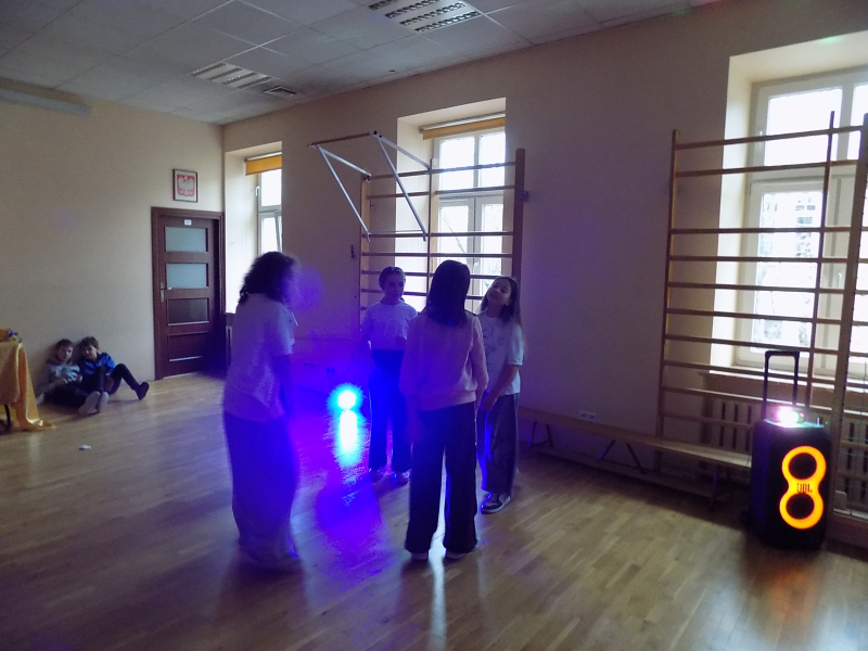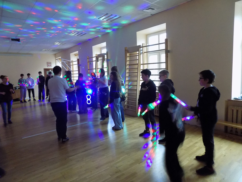 🎉🎉🎉 Do tanecznej zabawy andrzejkowej przyłączyli się również uczniowie klas starszych. W wir tańców i zabaw wprowadziła naszą młodzież Pani Kasia. Największą frajdę sprawiły wszystkim świecące pałki.