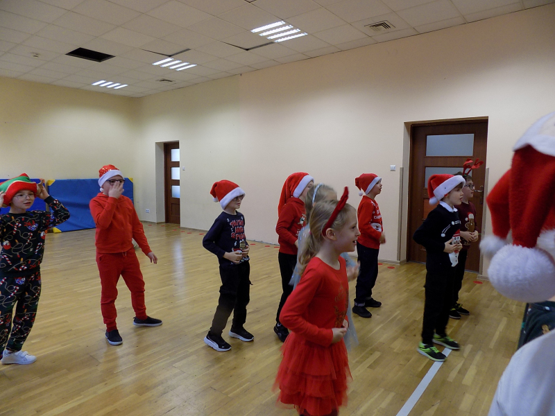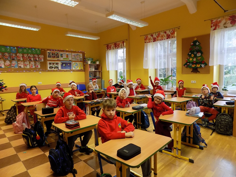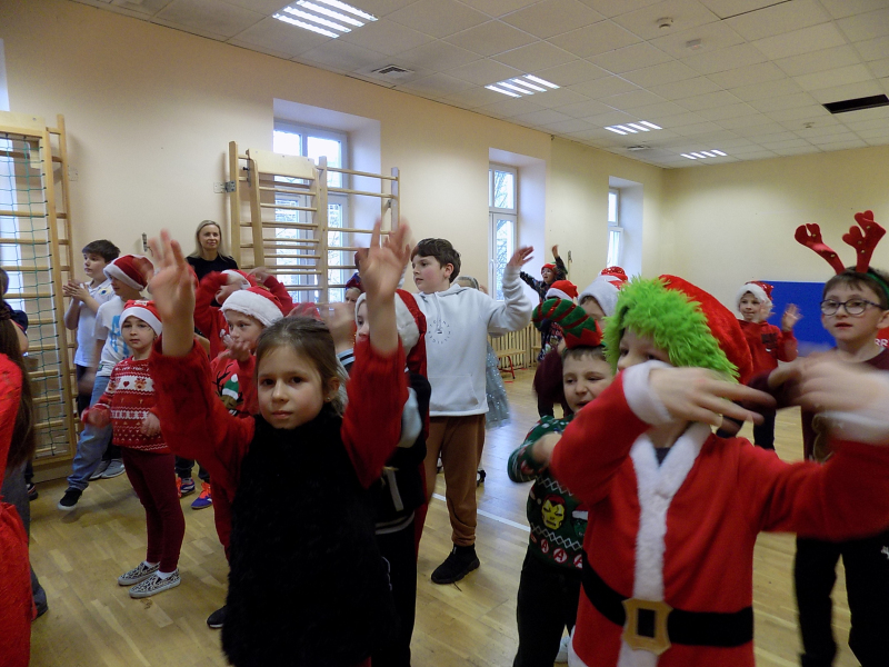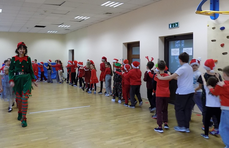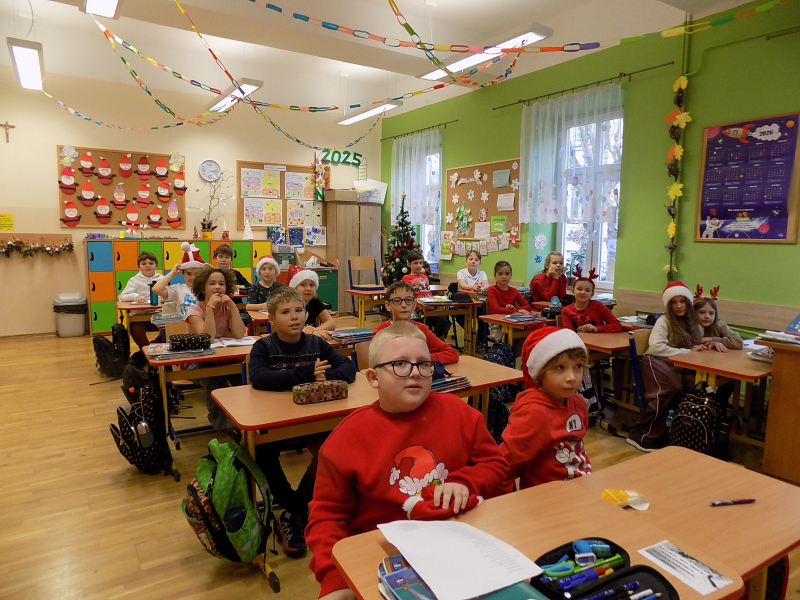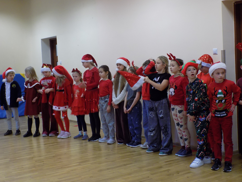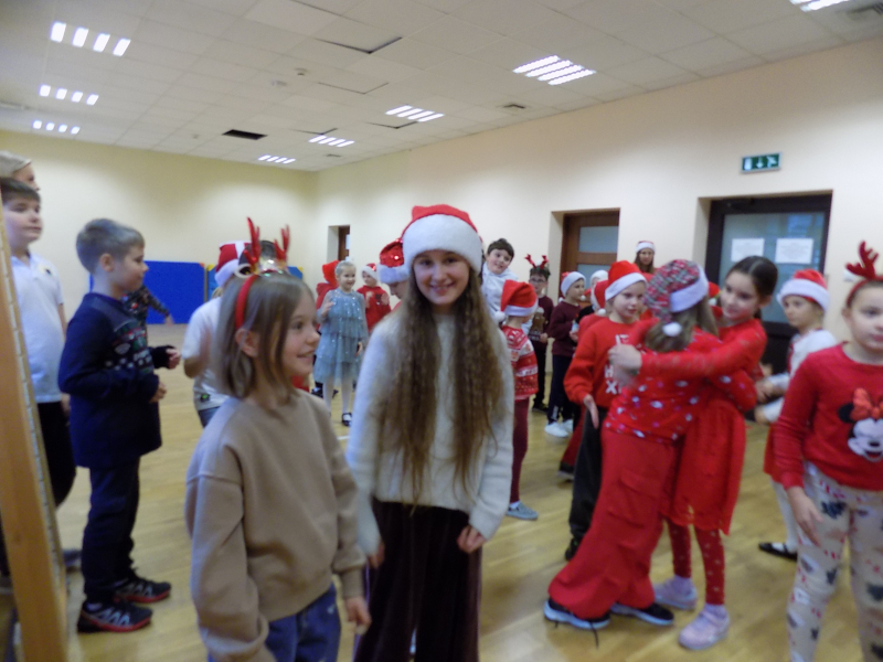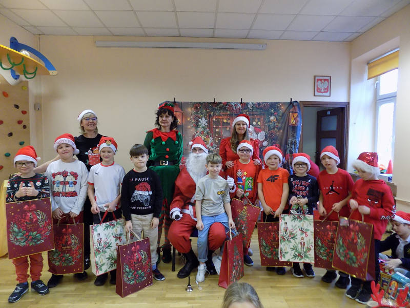 🎅🎁 5 grudnia to jeden z radośniejszych dni w naszej szkole. Był pełen uśmiechów, mikołajkowych czapeczek i świątecznych ubrań. W oczekiwaniu na wizytę Mikołaja uczniowie uczestniczyli w zabawach przygotowanych przez wesołego elfa 🧝, w którego wcieliła się nasza Pani Kasia. Zaczarowani uczniowie ochoczo hasali i rozwiązywali zimowe łamigłówki. Z ogromnym entuzjazmem powitali oczekiwanego gościa – świętego Mikołaja. 🧑🎄 Wszystkim bardzo podobały się prezenty. 🎁 W podziękowaniu za upominki uczniowie zaśpiewali piosenkę na cześć Mikołaja.