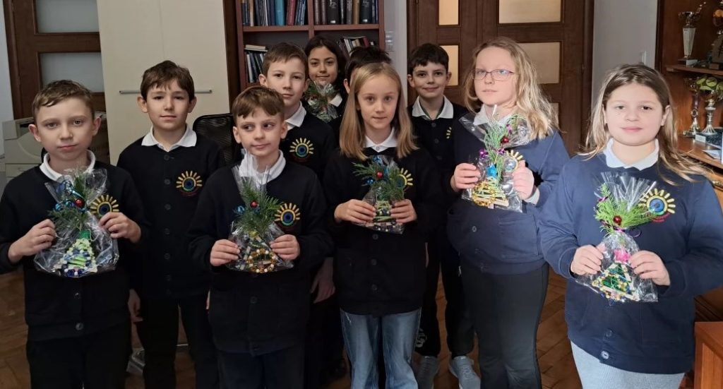 🎄🎁 Uczniowie klasy IV wybrali się do redakcji Życia Podkarpackiego, gdzie śpiewająco złożyli świąteczne życzenia 🎶 oraz wręczyli własnoręcznie wykonane upominki. 🎁🎄