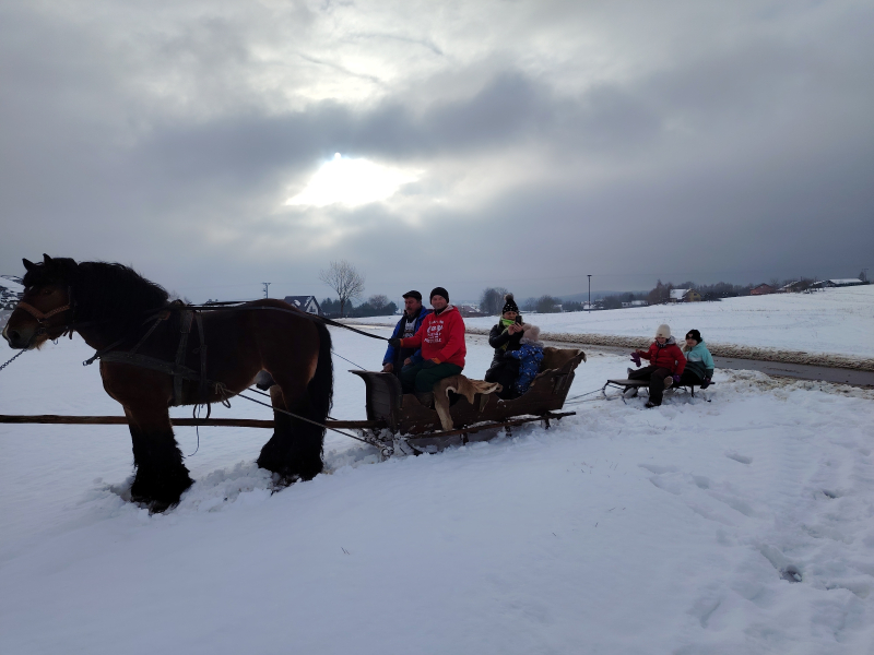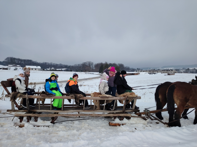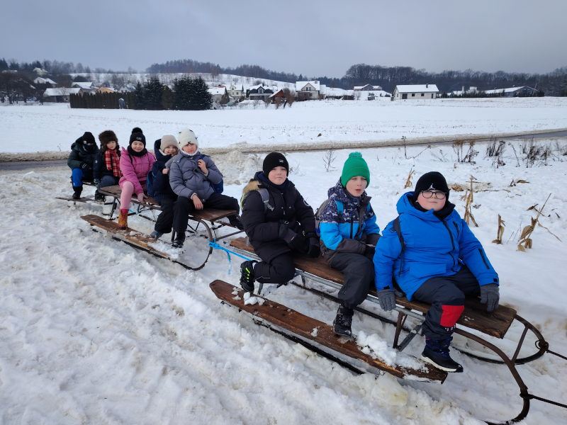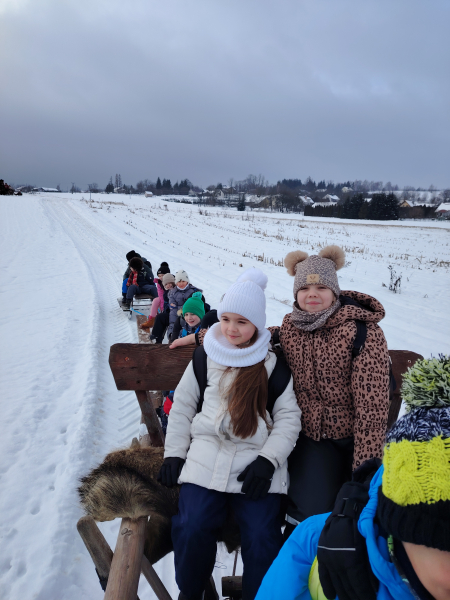 Jaka pyszna sanna, parska raźno koń… Korzystając z zimowej aury, w dniu 15 stycznia uczniowie z klasy 3 A wybrali się na kulig do Tarnawiec. Jak mówią słowa piosenki, konie parskaly, a dzieci się śmiały. Sanna, wspólna zabawa śmiech, ognisko, dobry apetyt, pozytywne wrażenia i emocje. To wszystko towarzyszyło nam w tym dniu. Zmęczeni, ale szczęśliwi wróciliśmy do bazy, czyli naszej szkoły.