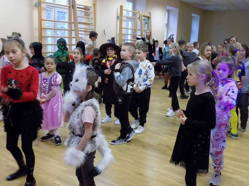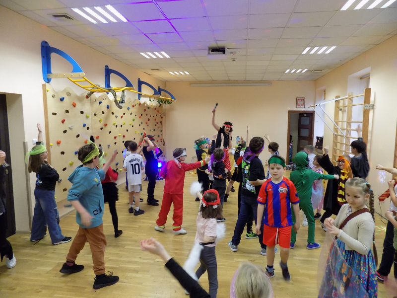 W piątek 30 stycznia uczniowie klas I-III uczestniczyli w tradycyjnej zabawie karnawałowej. 🎉🎈🎊 Większość uczniów była nie do poznania, dzięki oryginalnym i kolorowym strojom. 👮‍♀️🥷 Pani Kasia przygotowała dla nas wiele zabaw, konkursów i profesjonalną oprawę muzyczną. To była udana impreza, która dostarczyła nam dużo aktywności fizycznej i wspólnej radości. 💃🕺