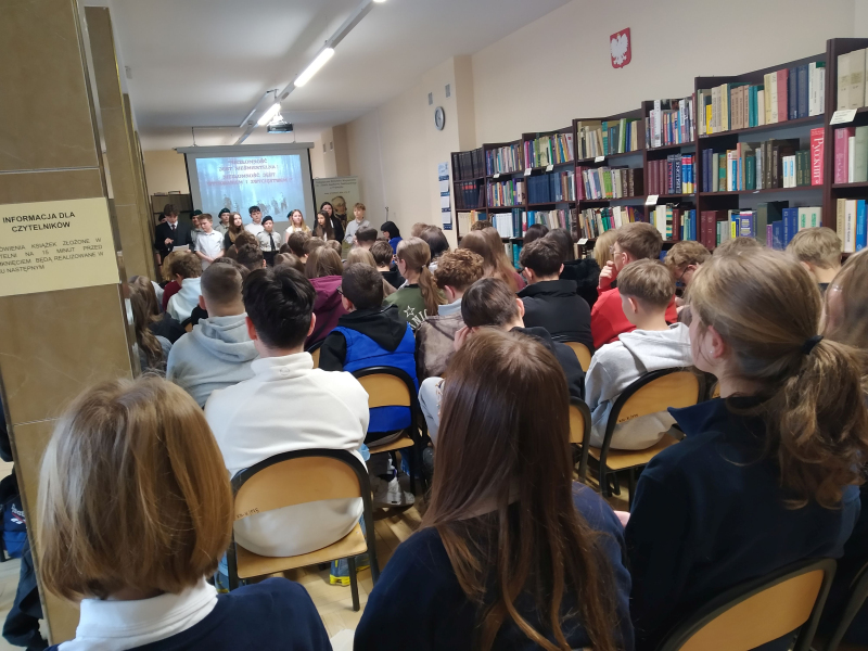 Uczniowie klasy 8a wybrali się w czwartek, 19 marca, na bardzo ciekawe spotkanie historyczne w Pedagogicznej Bibliotece Wojewódzkiej w Przemyślu. W czasie tego spotkania uczniowie Szkoły Podstawowej nr 6 w Przemyślu przedstawili program słowno-muzyczny, w którym przedstawili sylwetki wielu żołnierzy niezłomnych takich, jak Inka, Witold Pilecki, Emil Fieldorf Nil, czy Władysław Koba. Piękna oprawa poetycka i muzyczna programu sprzyjała zadumie i refleksji nas losem Polaków, byłych żołnierzy AK bezpośrednio po wojnie. Następnie prelegent Zenon Fajger (IPN Rzeszów) omówił w szerszym kontekście historycznym lata powojenne w Polsce i sytuację Polaków związanych z Polskim Państwem Podziemnym. W takich lekcjach historii to chętnie uczestniczymy…