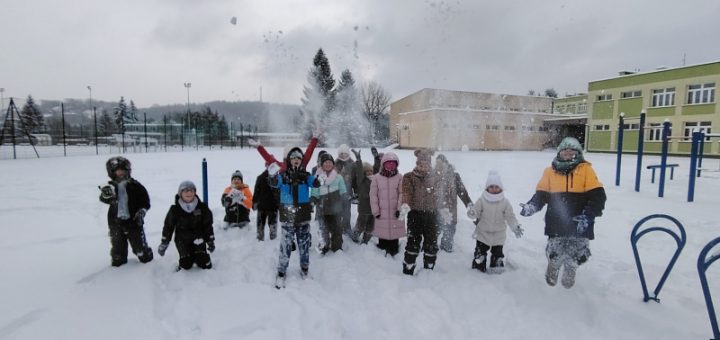 Biały puch ma w sobie to coś, co przyciąga i małych, i dużych. Przyciągną dzieci z klasy 3 i młodzież z klasy 7. Jedni i drudzy tonęli zarówno w śniegu, jak i w radości podczas białego szaleństwa. Zima jest piękna – hurrrraaa!!!